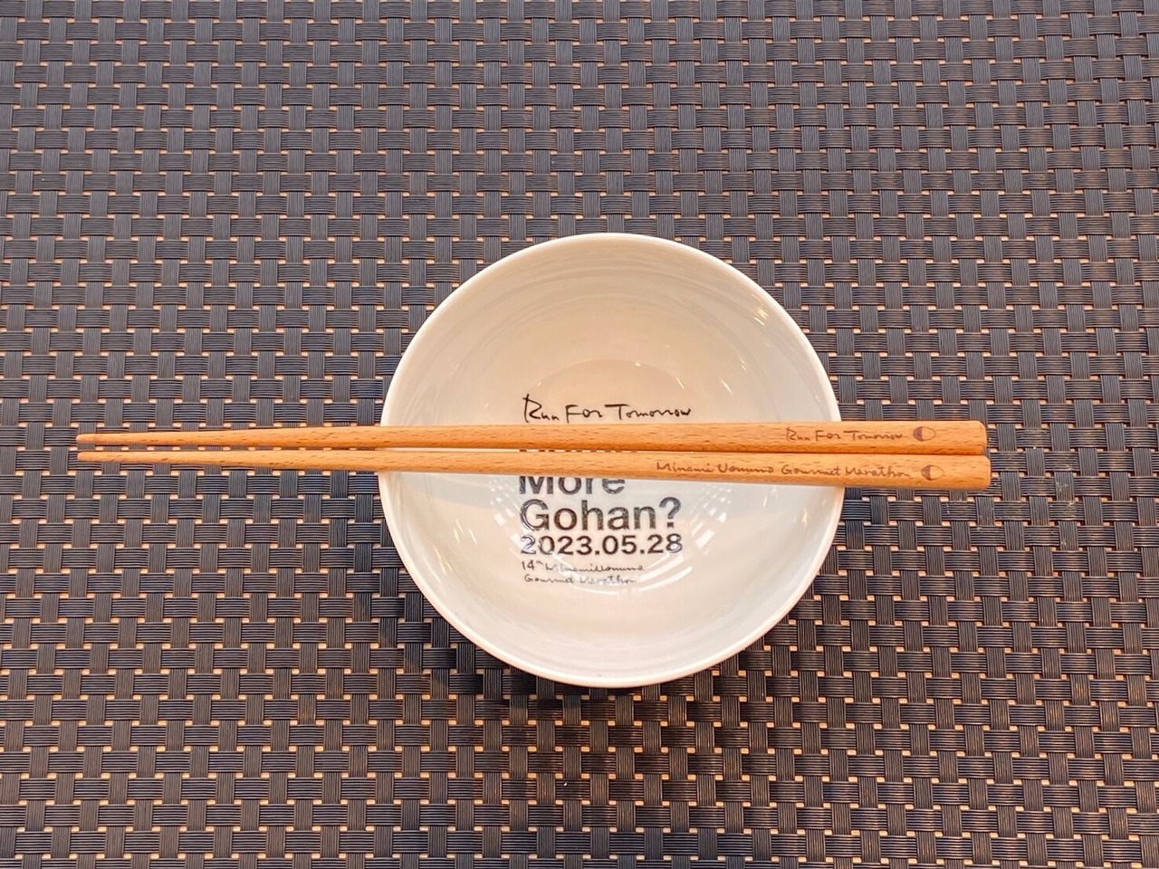 大会名の「MinamiUonuma Gourmet Marathon」と大会のテーマである「Run For Tomorrow」の刻印が入り、普段の食卓でも大会の魅力を感じることができるアイテムとなっています。